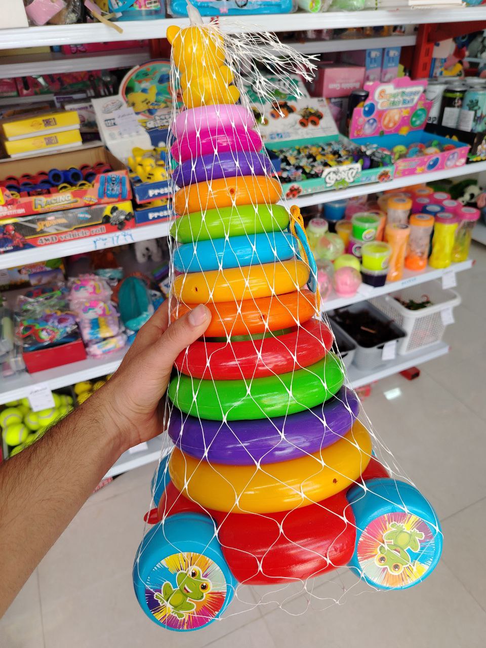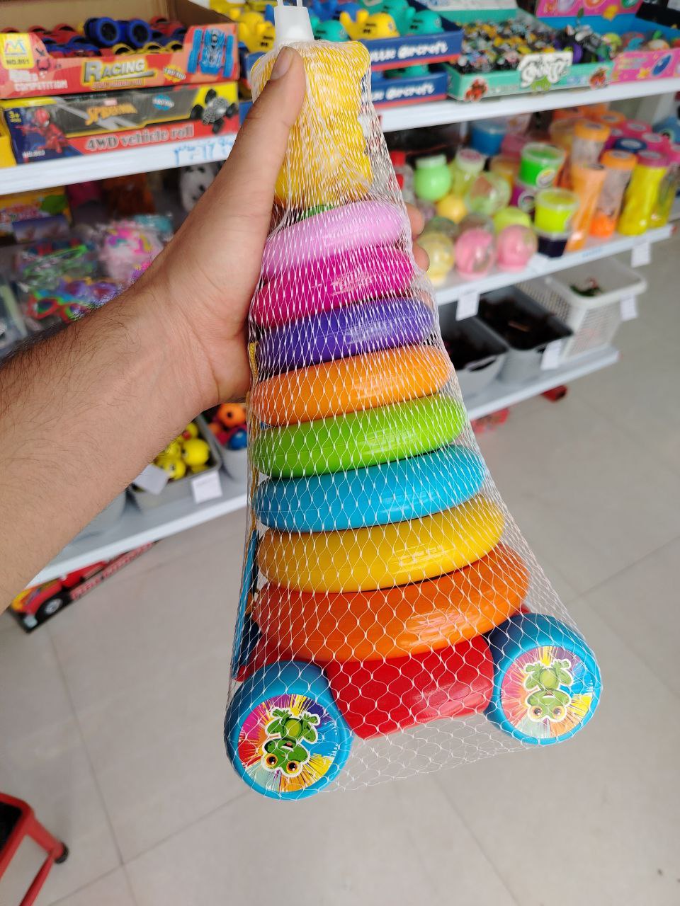 - محتویات بسته: پایه چرخدار + حلقههای رنگی در اندازههای مختلف