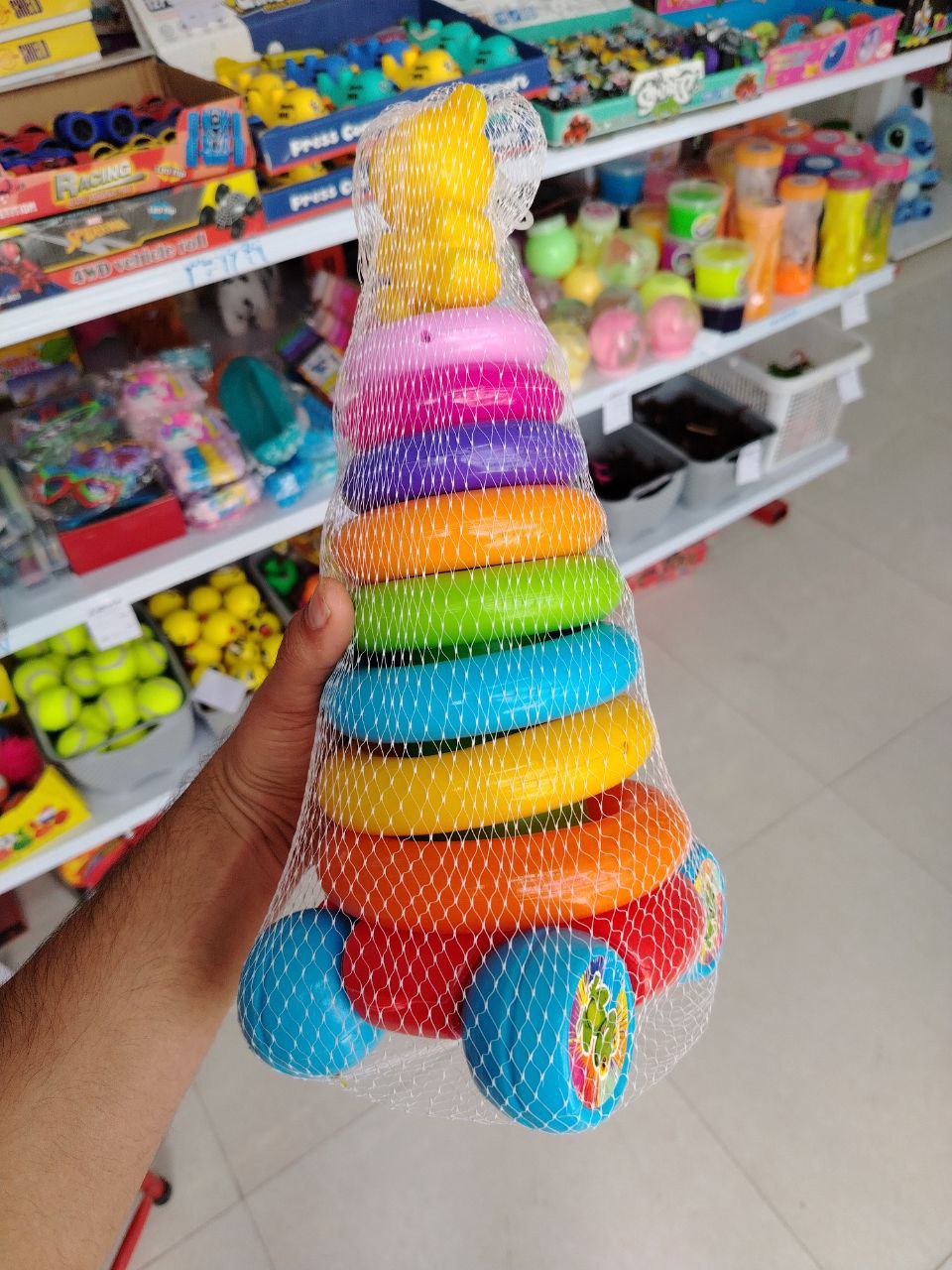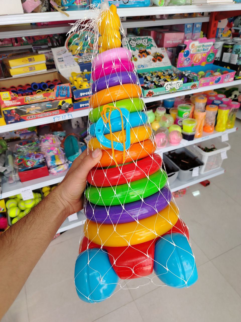 ✅ مناسب برای رشد مهارتهای حرکتی ظریف – قرار دادن حلقهها روی پایه، به بهبود هماهنگی دست و چشم کودک کمک میکند.